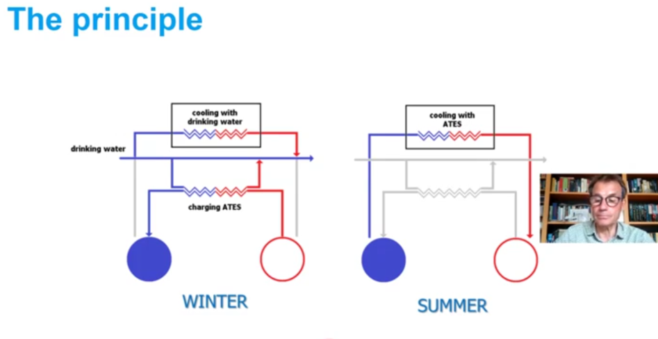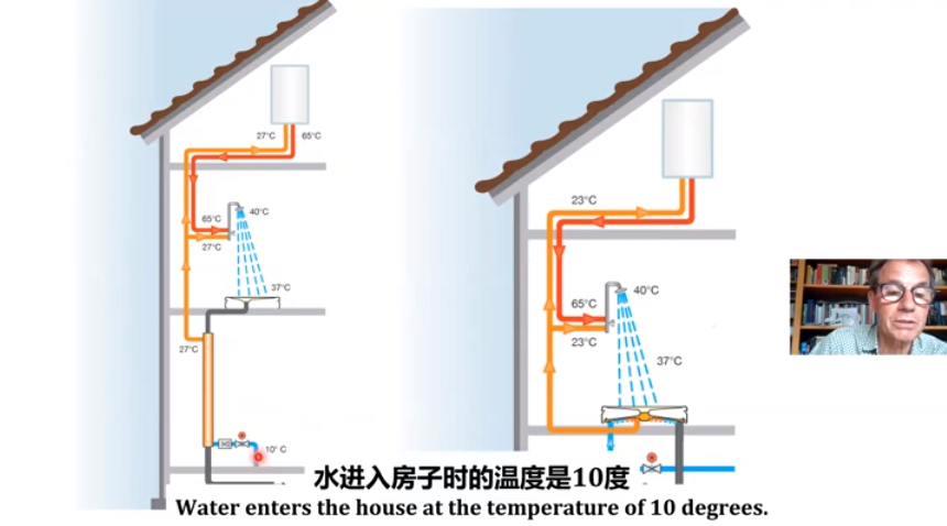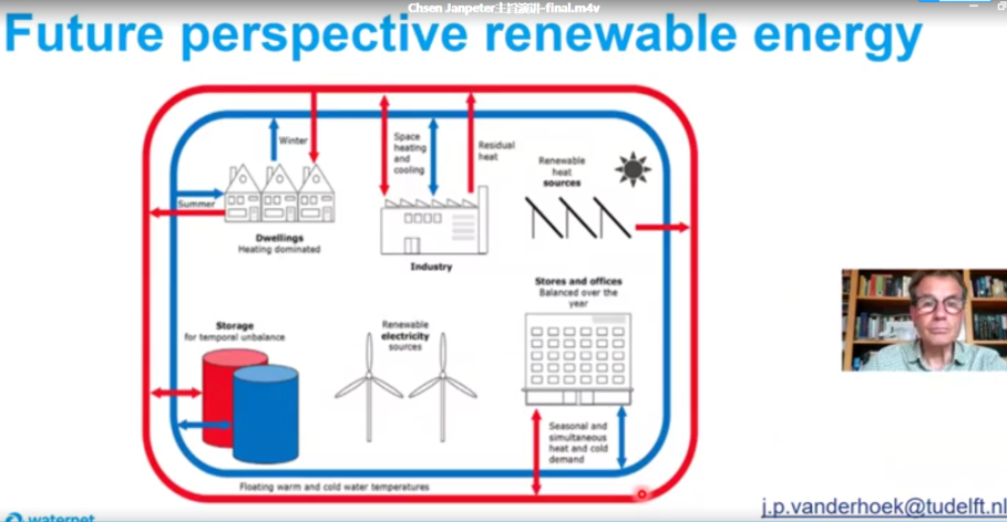 最后,van der Hoek教授认为,构建一个包含冷水管网和热水管网的系统,能量由污水、饮用水、地表水等蕴藏的水载冷热能供给,依靠水热储能系统进行季节平衡,可为阿姆斯特丹所有房屋和建筑提供热能。van der Hoek教授还展望,将太阳能和风能引入冷热水管网,可构建城市尺度上可持续可再生能源系统。