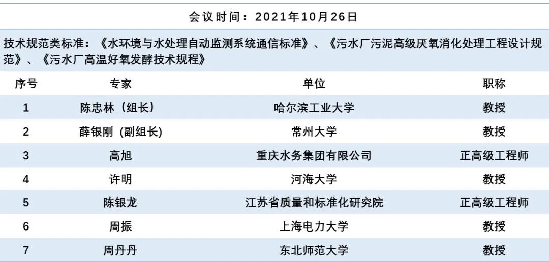 10月25-26日,中国城市科学研究会水环境与水生态领域团体标准线上专家审查会顺利召开。3项检测类团体标准:《污水中微塑料的测定 拉曼显微光谱法》、《水域雌激素活性的测定 人源细胞报告基因体外试验法》、《水质生化需氧量(BOD)的测定 微生物库伦测定法》,3项技术规范类团体标准:《水环境与水处理自动监测系统通信标准》、《污水厂污泥高级厌氧消化处理工程设计规范》、《污水厂高温好氧发酵技术规程》分别于25、26日参加了此次审查。 会议由中国城市科学研究会团体标准委员会秘书处赵蕊主持。哈尔滨工业大学环境学院教授陈忠林、清华大学环境学院教授彭剑峰、东北师范大学环境学院教授周丹丹、中国环境监测总站正高级工程师金小伟、常州大学环境与安全工程学院研究员级高工薛银刚、江苏省质量和标准化研究院正高级工程师陈银龙等审查组专家,同济大学环境科学与工程学院院长戴晓虎、中科院重庆绿色智能技术研究院副院长刘鸿等主编单位代表以及水分会常务副秘书长谢琤琤等秘书处相关人员参加了本次会议。