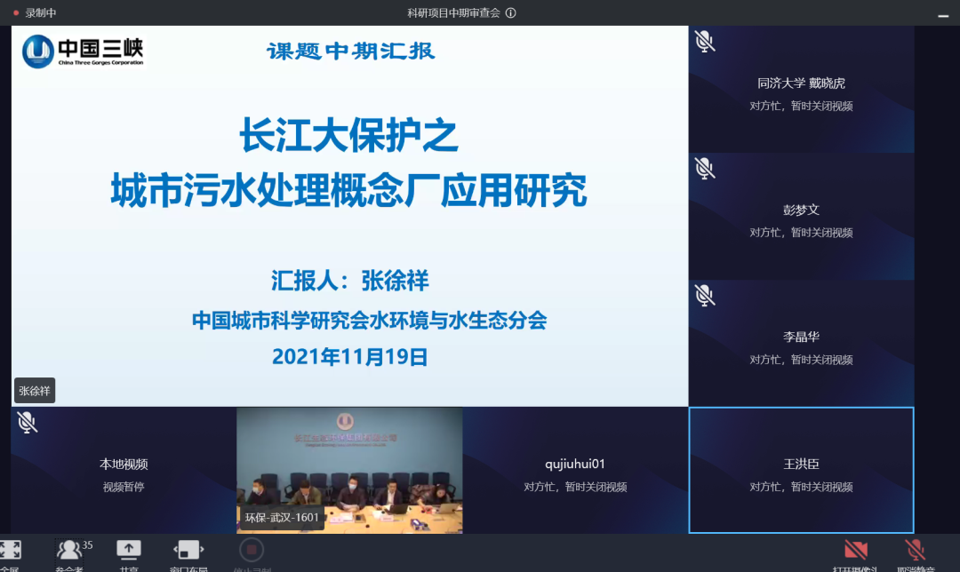 11月19日上午,由中国三峡集团科技创新部组织召开的“长江大保护之城市污水处理概念厂应用研究”课题中期评估会在线上顺利召开。会议由中国三峡集团科技创新部副主任李晶华主持。会议特邀专家、中国三峡集团和长江生态环保集团有限公司相关领导、课题承担单位中国城市科学研究会水环境与水生态分会(以下简称“水分会”)相关研究负责人员共30余人参加了本次会议。