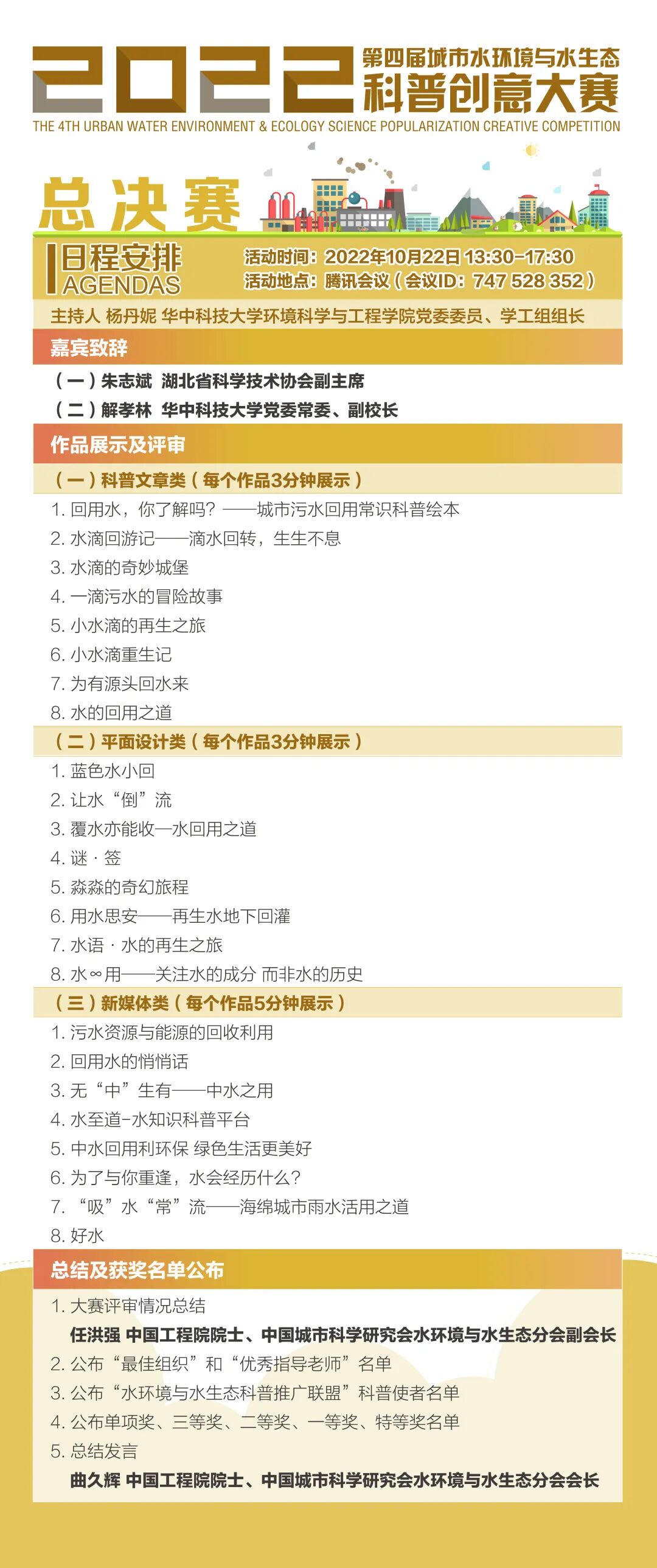 “2022年(第四届)城市水环境与水生态科普创意大赛”经过近十个月的精彩角逐后,即将迎来最后交锋!