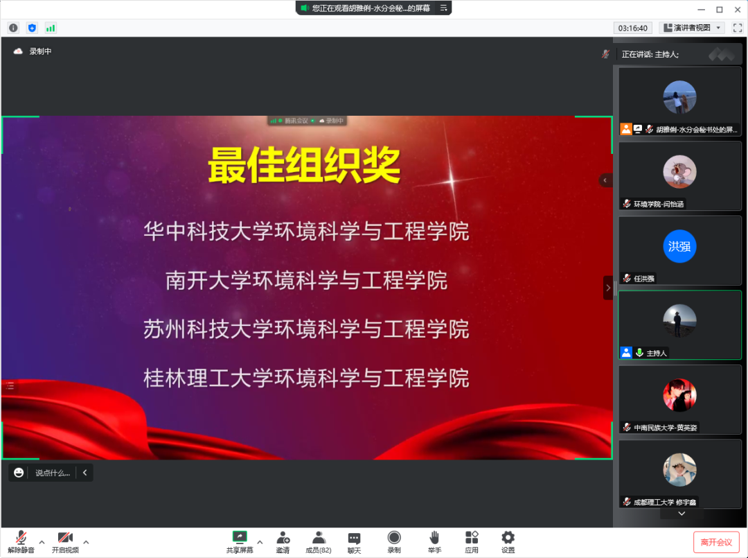 朱志斌副主席在致辞中表示,创新的发展离不开科普,本次大赛有利于推动全社会水共识的形成。同时,他强调交流、学习、实践的重要性,希望通过政企校协同育人促进各界环保人士创新思维的碰撞,助力青年学子传承环保创新意识,早日成长为当大任的时代新人!