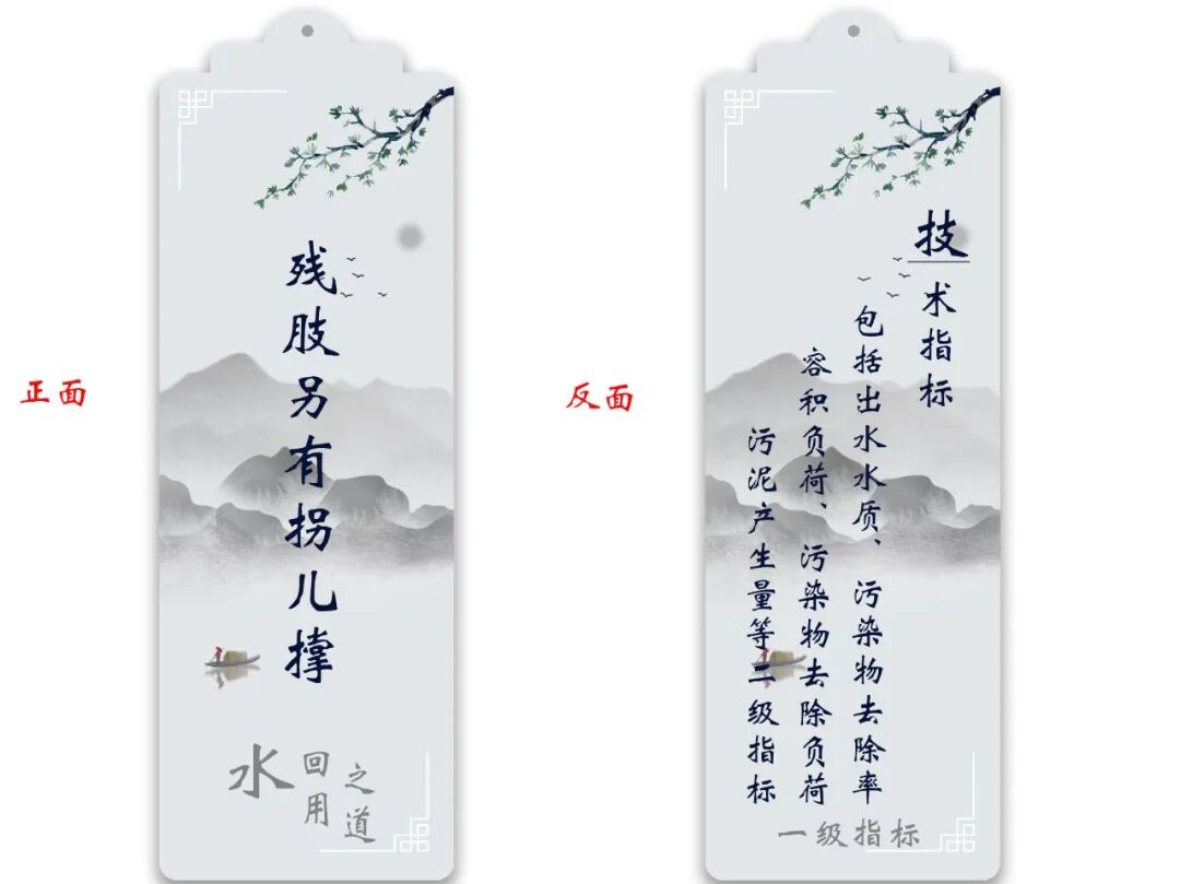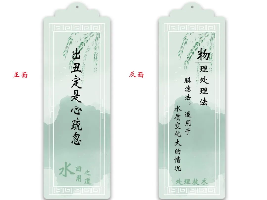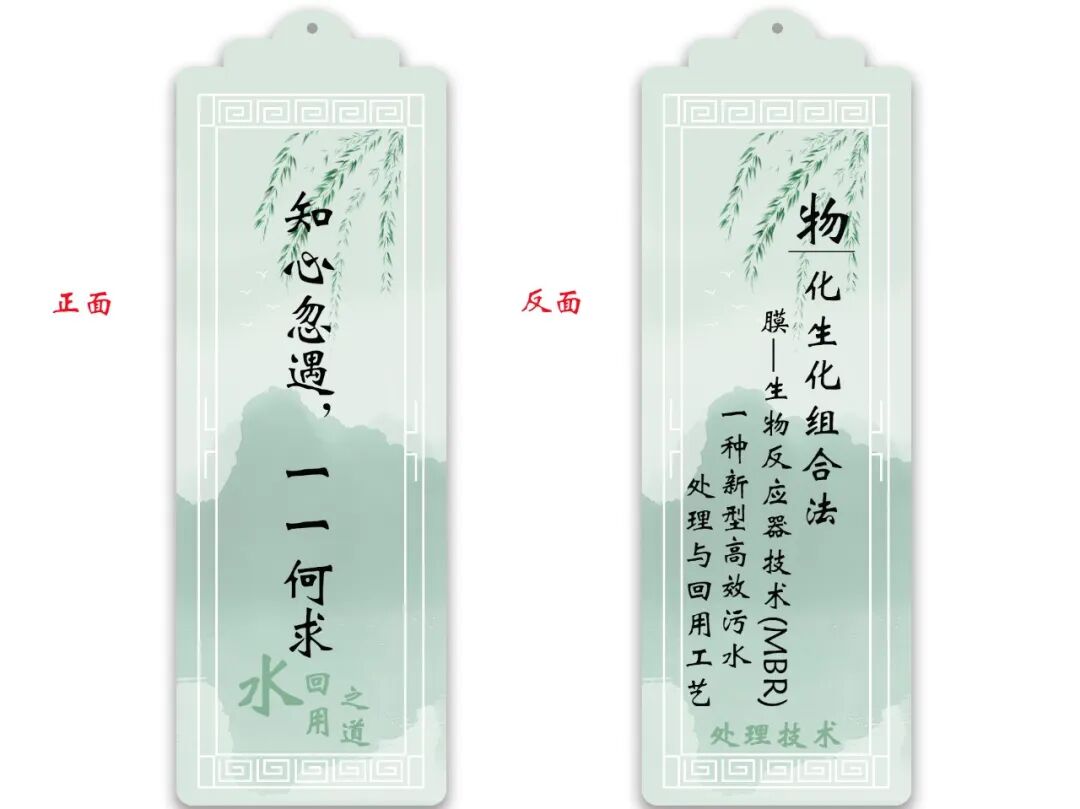 书签作为一种成本低廉但是却不失儒雅的物件,同时也是覆盖年龄范围广泛的物件。谜·签,一张普普通通的小卡片利用传统游戏——猜字谜的方式,猜出各个名词的首字,来普及相关概念或是特点,从而让大众更加了解回用水。