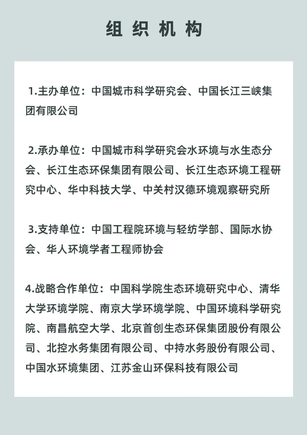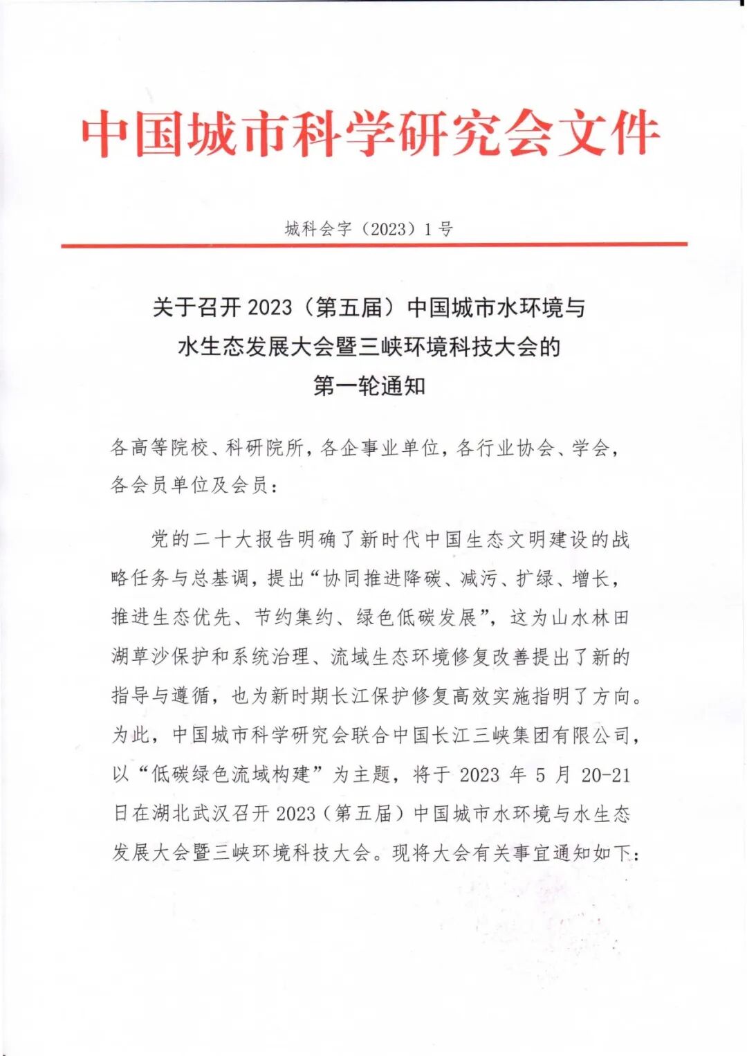 党的二十大报告明确了新时代中国生态文明建设的战略任务与总基调,提出“协同推进降碳、减污、扩绿、增长,推进生态优先、节约集约、绿色低碳发展”,这为山水林田湖草沙保护和系统治理、流域生态环境修复改善提出了新的指导与遵循,也为新时期长江保护修复高效实施指明了方向。为此,中国城市科学研究会联合中国长江三峡集团有限公司,将以“低碳绿色流域构建”为主题于2023年5月20-21日在湖北武汉召开2023(第五届)中国城市水环境与水生态发展大会暨三峡环境科技大会。