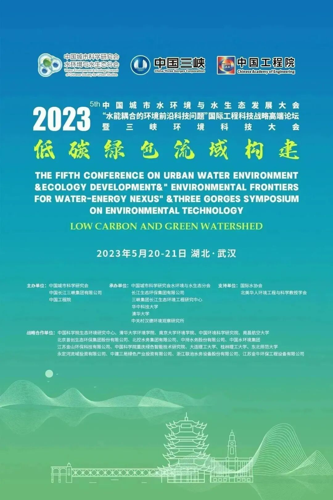 本届大会由中国城市科学研究会、中国长江三峡集团有限公司、中国工程院主办,中国城市科学研究会水环境与水生态分会、长江生态环保集团有限公司、三峡集团长江生态环境工程研究中心、华中科技大学、清华大学、中关村汉德环境观察研究所承办,国际水协会、北美华人环境工程与科学教授学会给予支持。