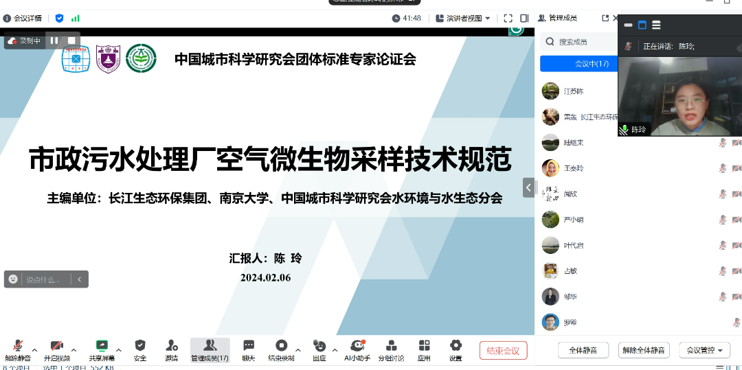 2月6日,中国城市科学研究会水环境与水生态分会(以下简称“水分会”)组织召开了团体标准《市政污水处理厂空气微生物采样技术规范(送审稿)》的线上审查会,来自水环境污染防治、大气污染与控制、标准管理的专家及编制组代表等近20人参加了本次会议。